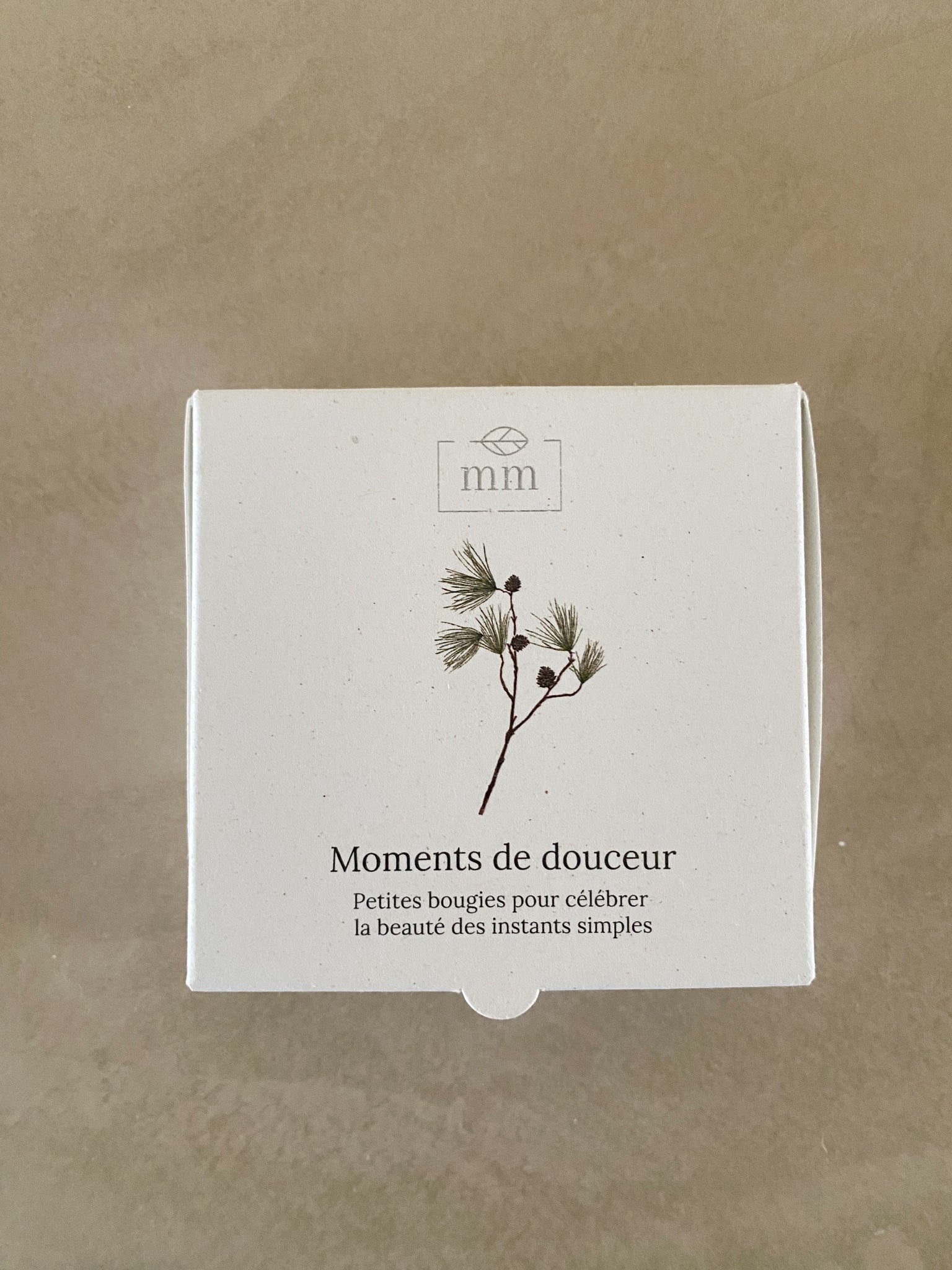 Un joli coffret contenant quatre petites bougies en forme de flocons de neige, au parfum délicat d’hiver et de fêtes.