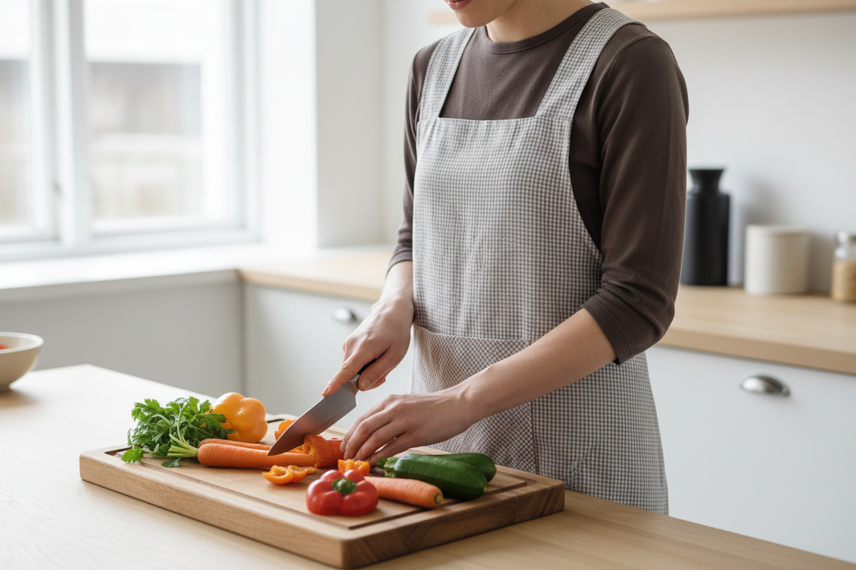 Idéal en cuisine comme pour d’autres activités créatives, ce tablier est entièrement cousu à la main dans notre atelier.