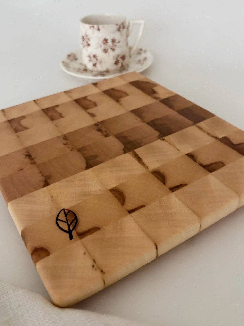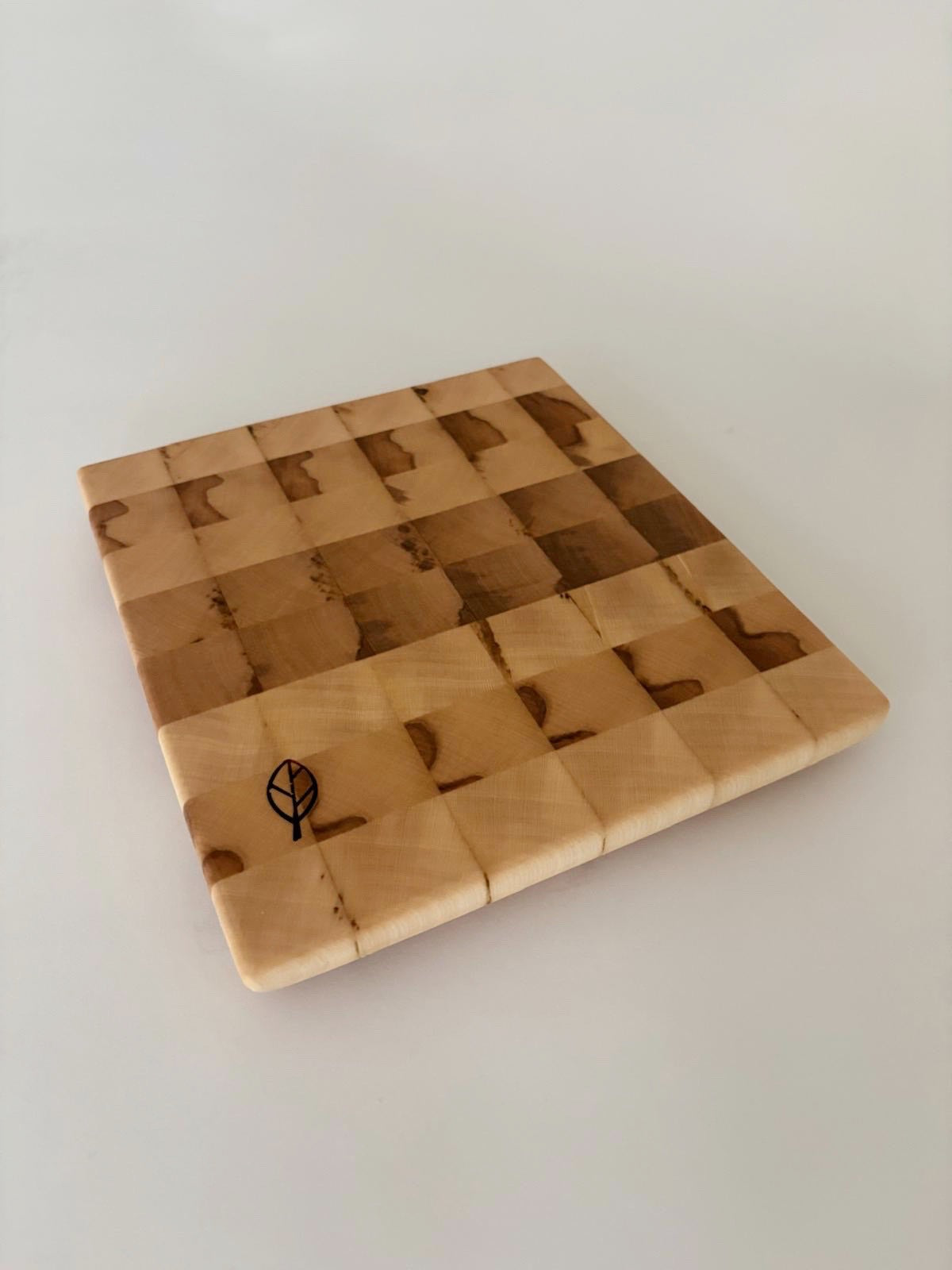 Le bois de bout est reconnu pour être plus résistant aux entailles de couteau et plus respectueux des lames – un choix intelligent même pour une petite planche.
